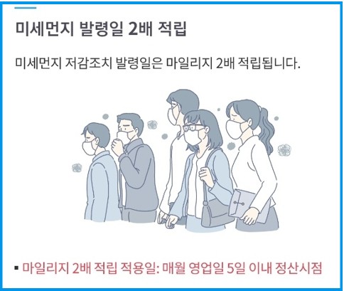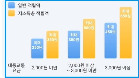 - 월 15회 이상 대중교통 이용 시 지급, 미세먼지 저감조치 발령 시 두배 지급