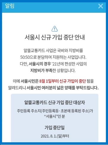 ※ 서울시 신규 가입 중단 : 2021년 8월 1일부터 신규 가입이 중단됨.
