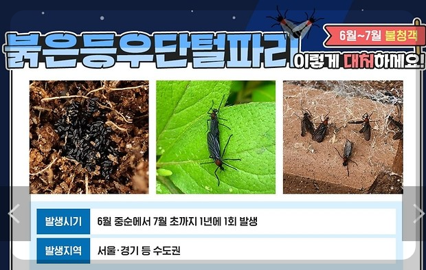 붉은등우단털파리(러브버그) 대발생 시 대처요령