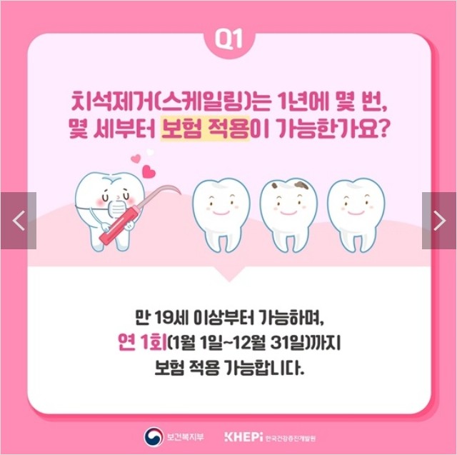 Q1. 치석제거(스케일링)는 1년에 몇 번, 몇 세부터 보험 적용이 가능한가요?