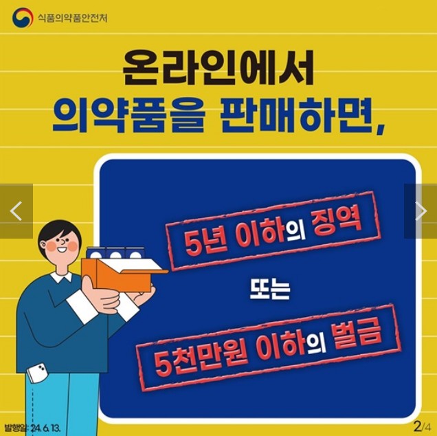 온라인에서 의약품을 판매하면, 5년 이하의 징역 또는 5천만 원 이하의 벌금!