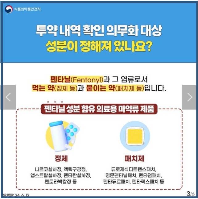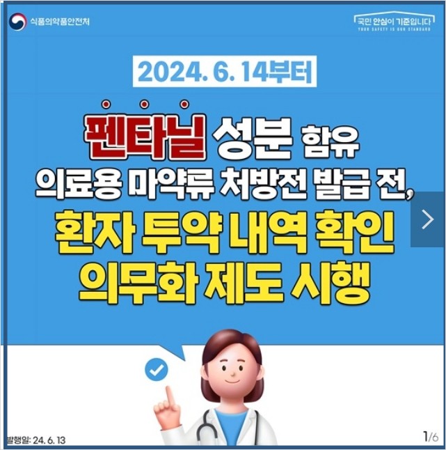 펜타닐 처방전 발급 시 환자의 투약내역 확인 의무화 제도 시행(24.06.14.)
