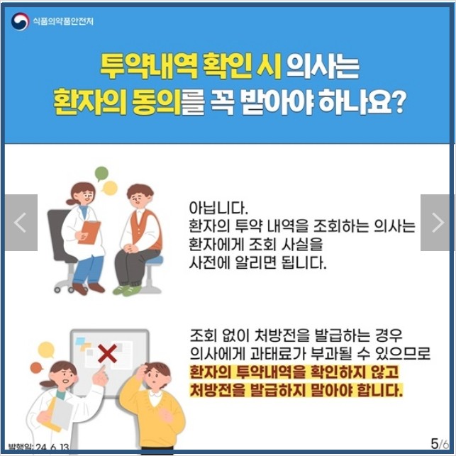 - 아닙니다 환자의 투약 내역을 조회하는 의사는 환자에게 조회 사실을 사전에 알리면 됩니다.
