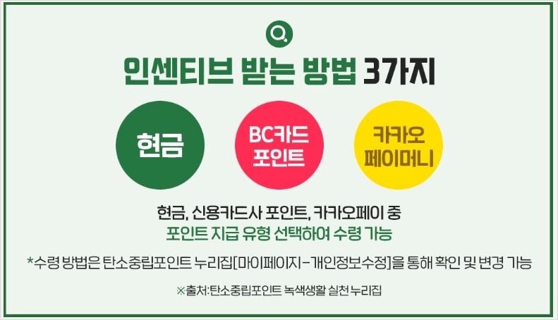 ※ 수령 방법은 탄소중립포인트 누리집[마이페이지-개인정보수정]을 통해 확인 및 변경 가능