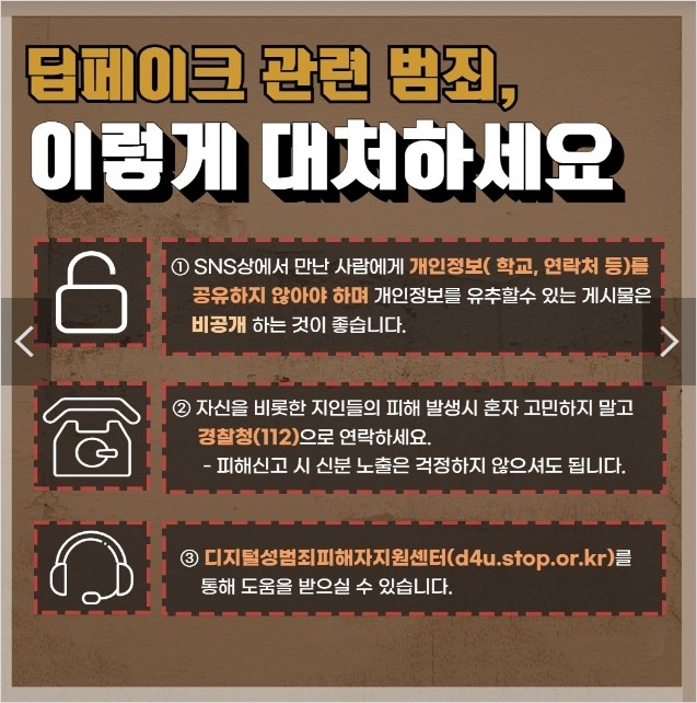 ② 자신을 비롯한 지인들의 피해 발생 시 혼자 고민하지 말고 경찰청(☎112)으로 연락하세요.