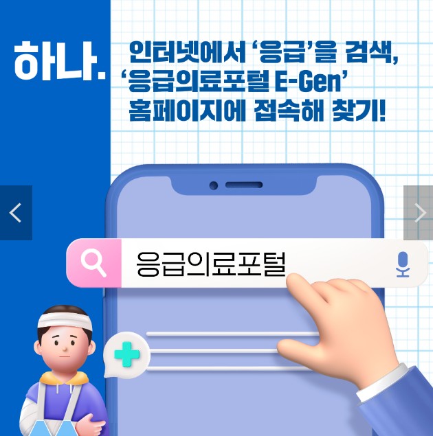 하나, 인터넷에서 ‘응급’을 검색, ‘응급의료포털 E-Gen’ 홈페이지에 접속해 찾기!
