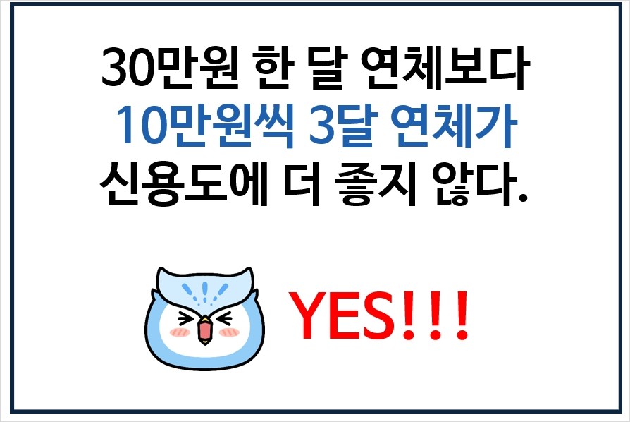 연체 기록은 단기 연체의 경우 3년간, 장기 연체의 경우(90영업일 이상)의 경우 5년간 보존되며, 신용 평가에 반영됩니다. 친구와의 우정과 신용이 비슷한 면이 있는데요. 신용과 우정 모두 잃기는 쉽지만, 다시 회복하는 것은 매우 어렵습니다. 따라서 평소에 꾸준히 잘 관리하는 습관이 중요합니다.