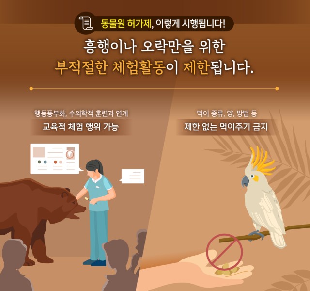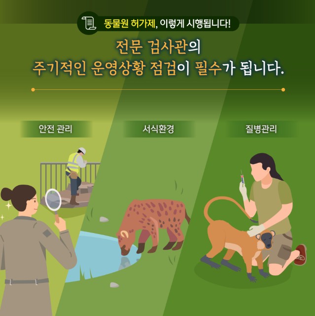 동물의 생태적 습성을 고려한 시설, 동물복지 사항을 준수해야 동물원 운영이 가능한 제도입니다.