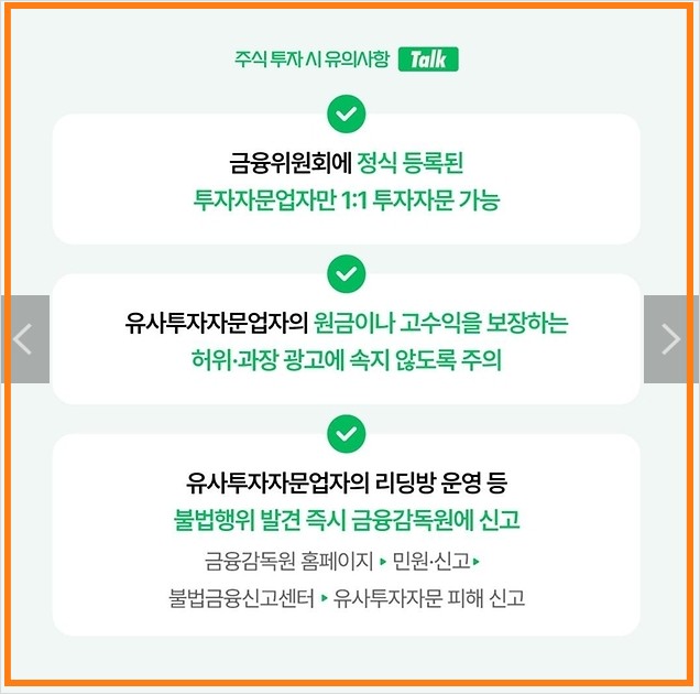 - ※ 개별 상담이 가능한 투자자문업자인지 확인해야 하며 예정 종목 매수 후 추천은 주가조작 범죄로 연루될 수 있습니다.