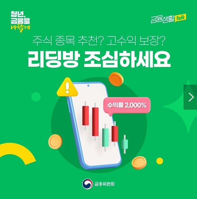 '리딩방'이라고 알려진 곳에서 취하는 정보는 검증되지 않은 내용으로 투자 활용 시 주의해야 합니다.