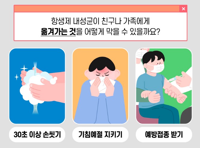- 항생제 내성균이 친구나 가족에게 옮겨가는 것을 어떻게 막을 수 있을까요?