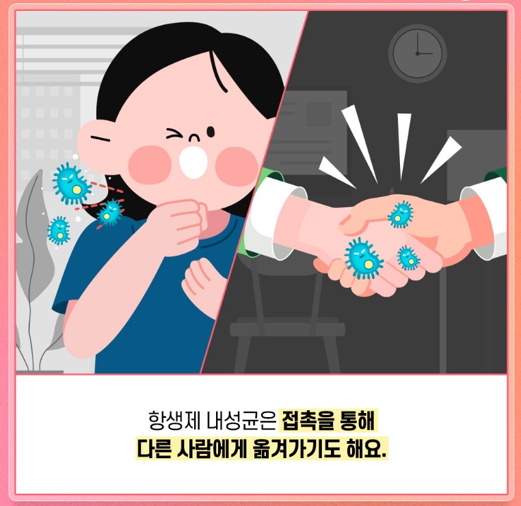항생제 내성균은 접촉을 통해 다른 사람에게 옮겨가기도 합니다.
