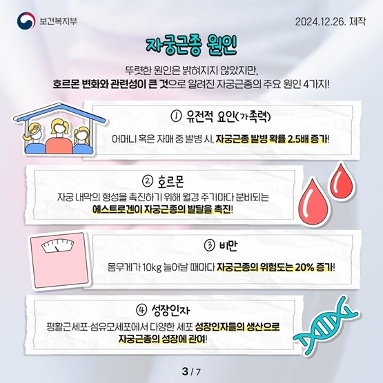 자궁 내막의 형성을 촉진하기 위해 월경 주기마다 분비되는 에스트로겐이 자궁근종의 발달을 촉진! - ③ 비만