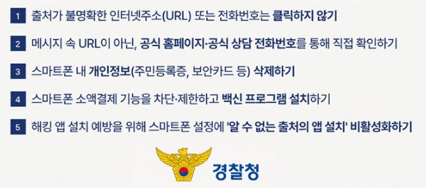 - 출처가 불명확한 인터넷주소(URL) 또는 전화번호는 클릭하지 않기