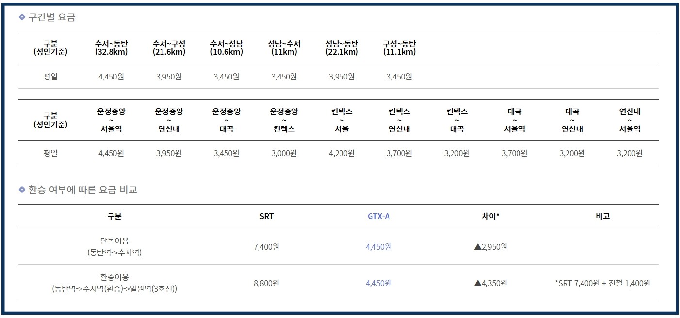 GTX-A 운임 안내