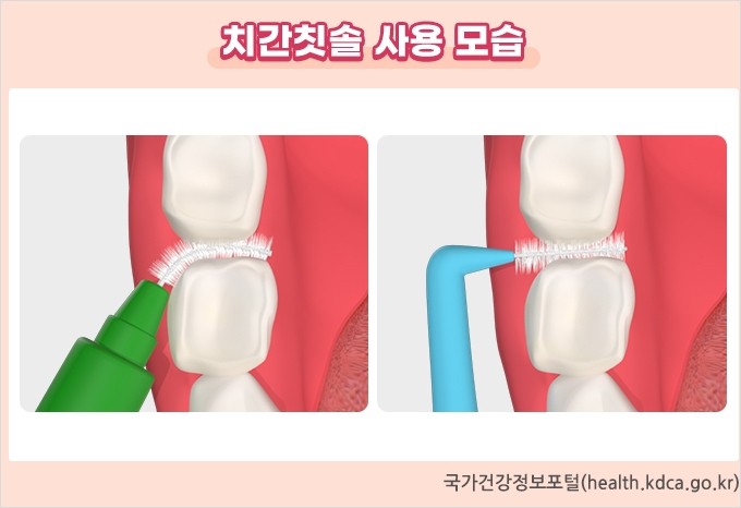 - 치간칫솔은 사용 후 깨끗이 씻어서 보관하고, 철심이 구부러졌거나 칫솔모가 마모되면 교체합니다.
