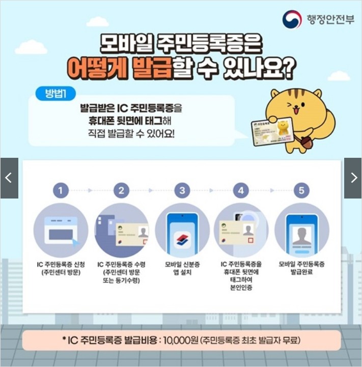 * IC 주민등록증 발급비용 : 10,000원(주민등록증 최초 발급자 무료)