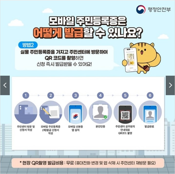 *현장 QR촬영 발급비용 : 무료(휴대전화 변경 및 앱 삭제 시 주민센터 재방문 필요)