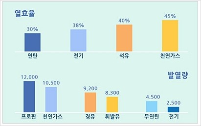 석유, 연탄 등 타연료에 비해 열효율이 높고 냉난방은 물론 자동차, 전자, 유리 및 섬유산업 등에