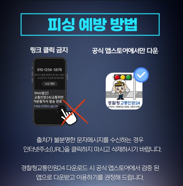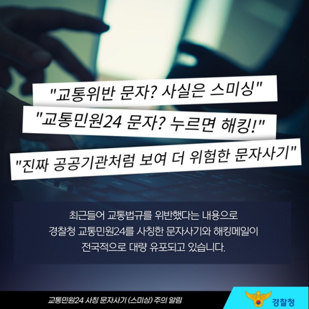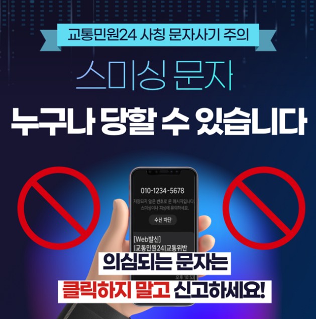 "교통민원24" 사칭 문자사기 (스미싱) 주의!