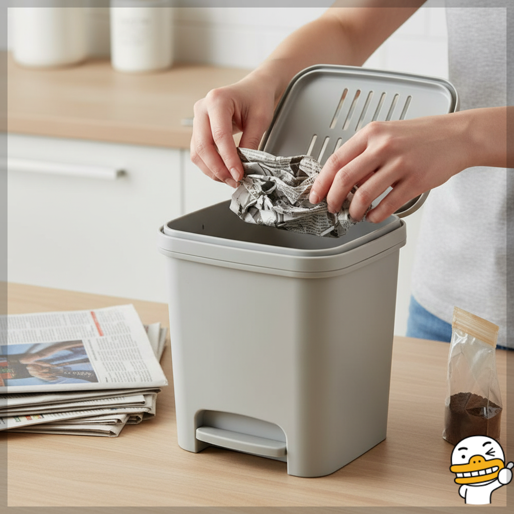 - 여름철 골칫거리인 음식물 쓰레기 냄새! 신문지 한 장이면 간단하게 해결할 수 있습니다. 음식물 쓰레기를 버리기 전에 신문지를 구겨서 쓰레기통 바닥에 깔아보세요. 신문지가 습기를 흡수해 냄새를 잡아주고, 음식물 쓰레기가 달라붙는 것도 막아줍니다.