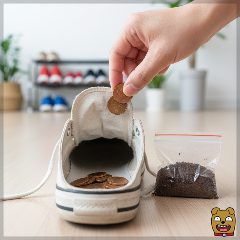 5. 신발 악취 제거, 동전의 힘을 믿어보세요!