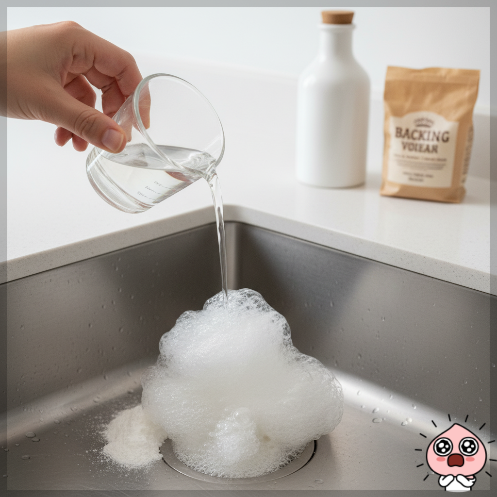 4. 꽉 막힌 하수구, 식초와 베이킹 소다로 뚫기